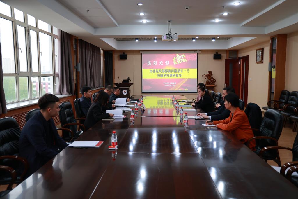 5月11日上午,齐齐哈尔市委组织部副部长郭海涛一行来校调研指导工作。调研会在图书馆603会议室召开。院长曹然彬、党委书记郭伟东、副院长白雪、党委组织部部长、党委教师工作部部长、人事处处长王丹、党委组织部部长助理张婷婷参加座谈会。曹然彬代表学校对郭海涛一行表示热烈欢迎,详细介绍了学校基本情况、师资队伍、当前重点工作及制约学校高质量发展的问题和下一步工作思路。希望双方深化合作,加强人才干部合作交流,共...