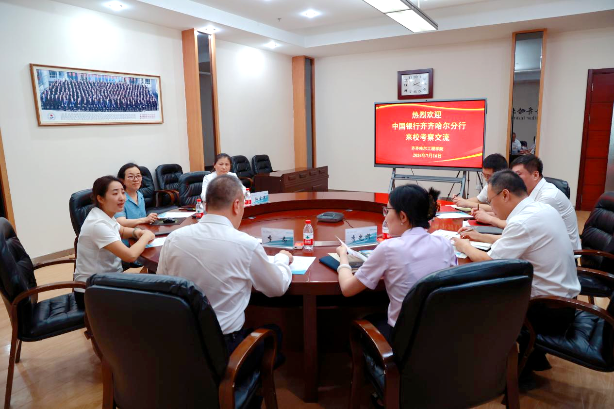 7月16下午,中国银行齐齐哈尔分行行长季志、副行长李光妍、副行长赵亮、金融部主任朱君、金融部副主任马宏强一行5人来校考察交流,学校常务副院长陈景鑫、理事姜岩、财务处副处长孙爱萍接待并参加座谈。座谈会上,陈景鑫首先对中国银行齐齐哈尔分行一行的到来表示热烈欢迎,介绍了学校的办学特色、人才培养、课程建设等。陈景鑫强调,高校作为知识创新和人才培养的重要基地,始终致力于与社会各界建立广泛的合作关系,共同推动...