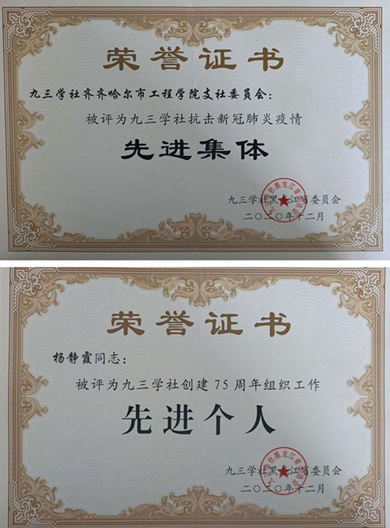 近日,永利九三学社支社被九三学社黑龙江省委员会评为九三学社抗击新冠肺炎疫情先进集体,支社主委杨静霞同志被评为九三学社创建75周年组织工作先进个人。 【责任编辑 刘丽】