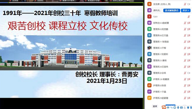 1月23日上午9点开始,分上下午,历时6个小时,在学校图书馆601报告厅主会场,创校校长、理事长曹勇安教授进行1991年——2021年创校三十年寒假教师培训,作题为《艰苦创校 课程立校 文化传校》专题讲座,会议线上线下...