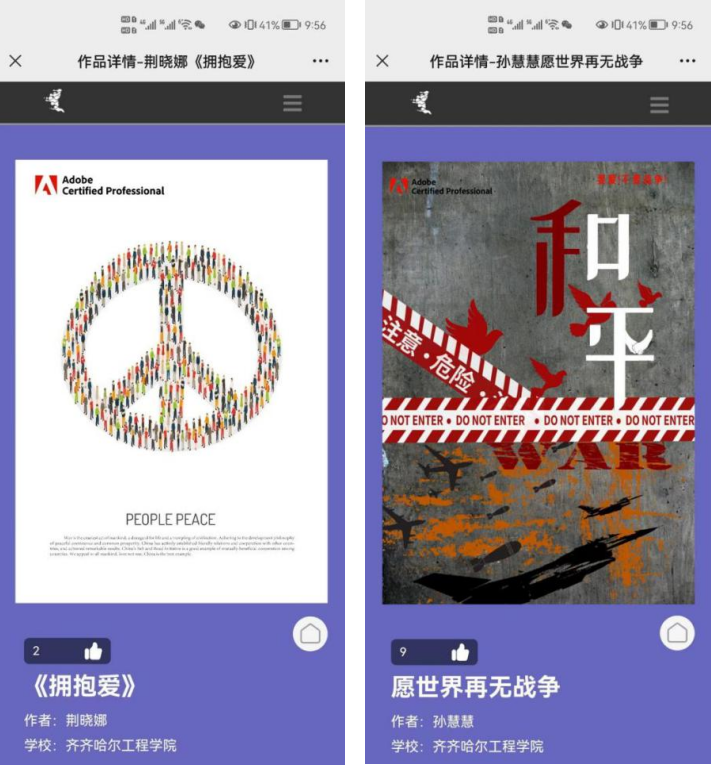 6月初,2022 Adobe Certified Professional 世界大赛中国赛区总决赛完美收官,永利视觉传达设计专业201班荆晓娜同学的作品《拥抱爱》获得最佳创意奖和最佳美术奖两项殊荣,191班孙慧慧同学获得入围奖。 Adobe Certif...