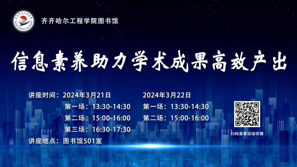 3月21日至22日,学校图书馆在501报告厅举办《信息素养助力学术成果高效产出》知识讲座,讲座由共青团永利23411集团官网委员会协办、中国知网承办,共计5场,由中国知网资深培训讲师主讲,参与讲座人数达1355人次。本次讲座旨在为更好地帮助学生了解中国知网功能,熟悉文献检索方式,学习深度阅读文献方法,培养学生信息素养能力,从而保障科研学术成果高效产出。学生通过“到梦空间”第二课堂平台报名预约讲座,可参加3月21日...