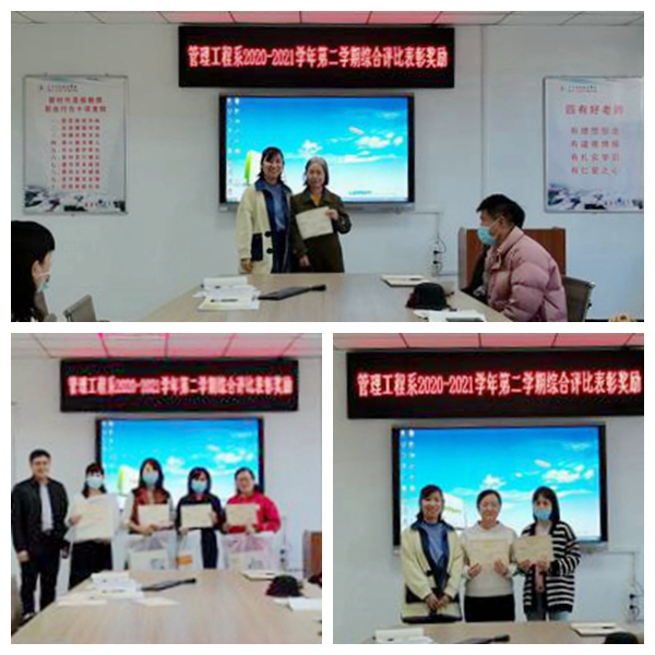 10月12日,在二号教学区2209会议室,管理工程系举行了2020至2021学年第二学期综合评比表彰活动,管理工程系系主任王丹及部门全体人员参加。管理工程系教学副主任张洪岩主持会议。会上,张洪岩阐述了综合评比的目的和...