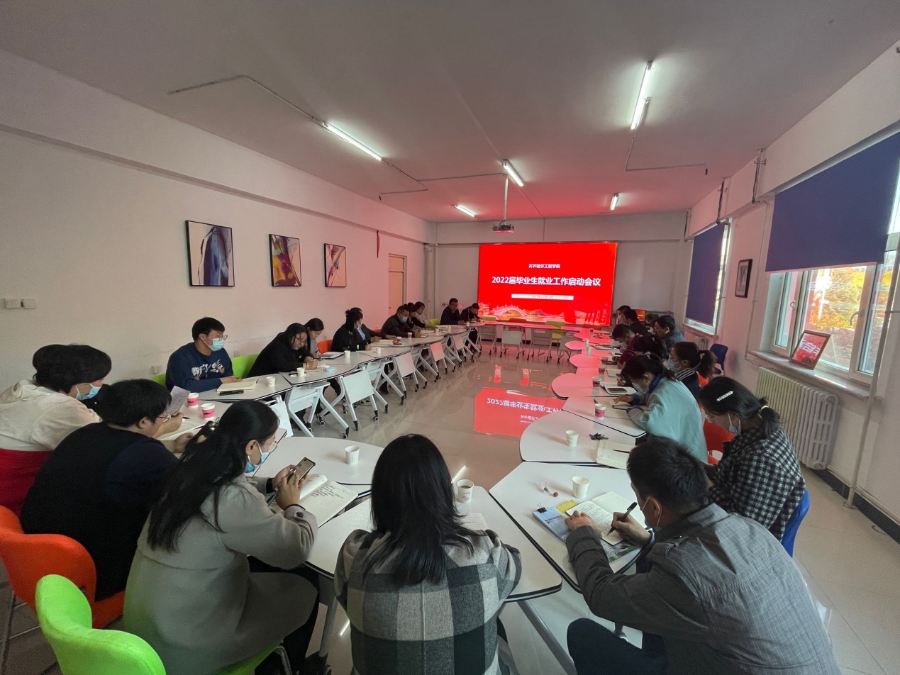 10月14日下午,学生发展中心在二号教学区2102室,召开2022届毕业生就业工作启动会议。副院长张振笋、各系系主任、专业长、就业办相关人员26人参加会议,学生发展中心负责人康静主持会议。 会上,康静首先从学校202...