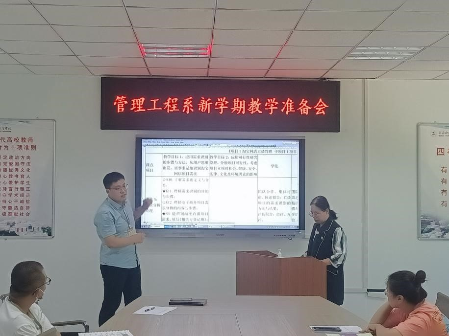 8月22日上午,管理工程系在二号教学区2209会议室组织教师进行2022-2023学年第一学期课程建设汇报。本次活动采取线上线下相结合的方式进行,全体专业教师参加,教学工作副主任张洪岩主持。 首先,全体专业教师以教研室...