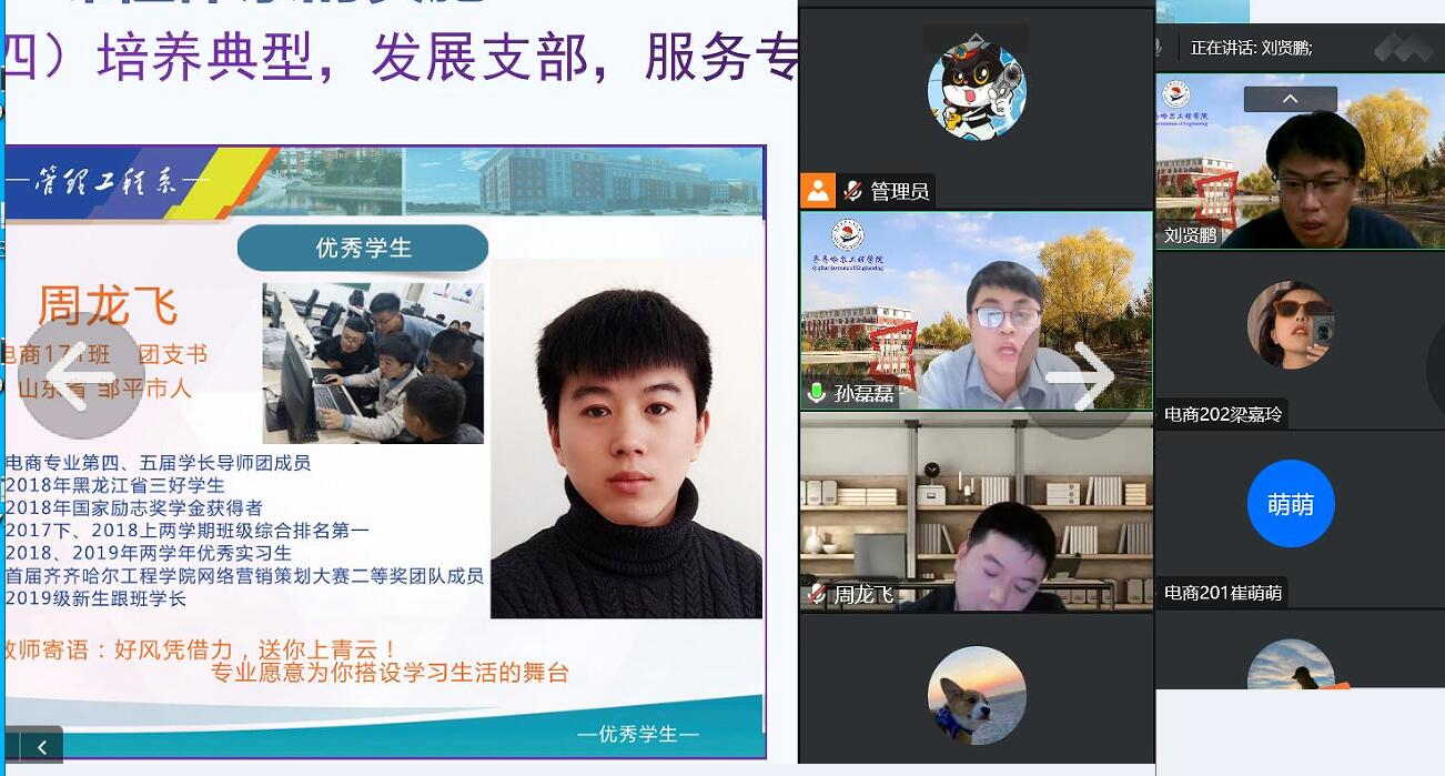 11月23日21时,管理工程系电子商务专业线上邀请电商2015级优秀毕业生孙磊磊(赶集网黑龙江肇源分公司经理),电商2017级优秀毕业生、黑龙江省三好学生周龙飞(古井集团青岛区业务经理)二位校友进行回访座谈。全面质...