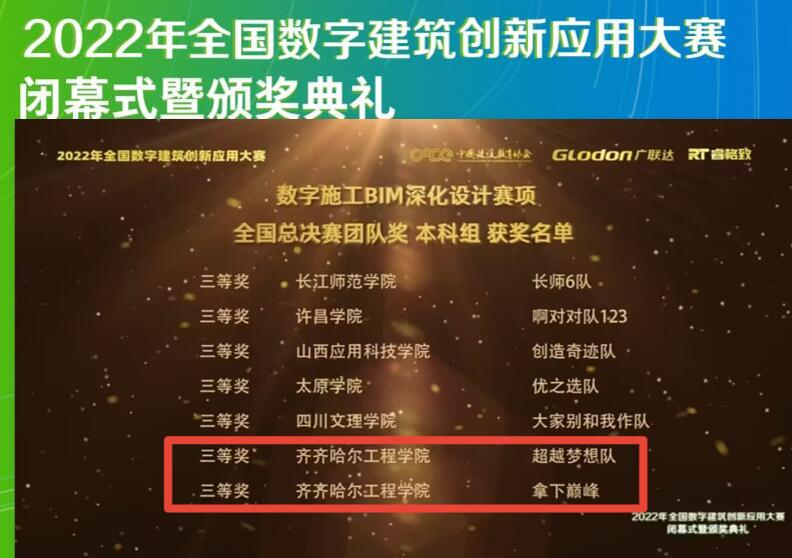 11月26日,2022年全国数字建筑创新应用大赛闭幕式暨颁奖典礼在线上举办。闭幕式公布了全国总决赛团队奖获奖名单,永利建筑工程系土木工程专业共有4个团队荣获三等奖,分别是美少女队、超越梦想队、拿下巅峰队和勇往直...