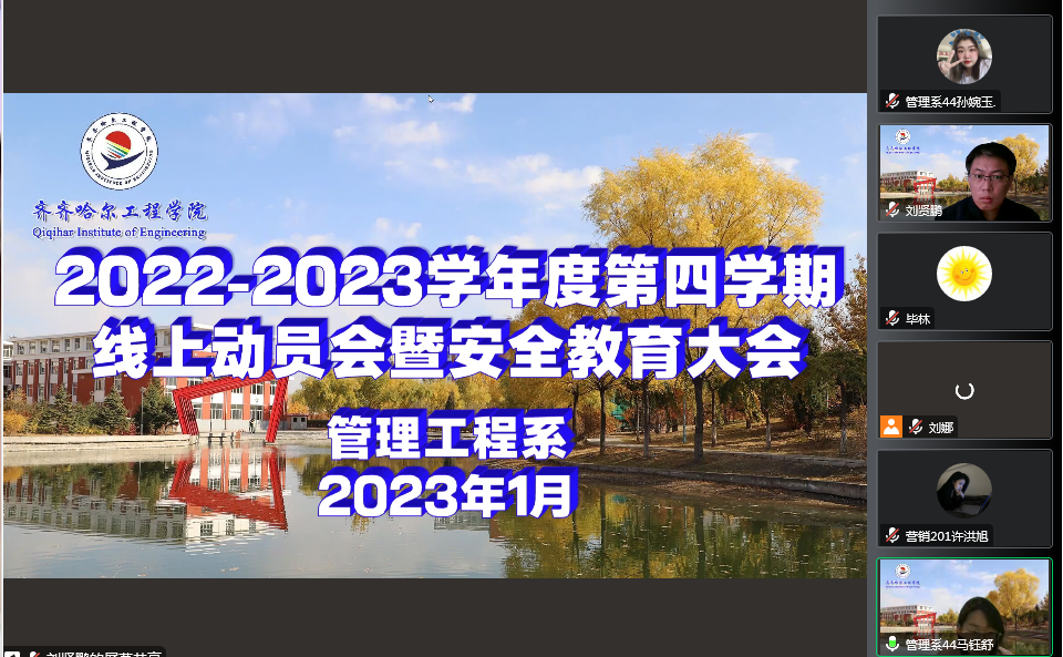 1月4日下午,管理工程系线上召开第四学期线上动员培训会。系学生工作副主任刘贤鹏,系辅导员、生涯导师及2020级、2021级、2022级全体学生参会,辅导员刘娜主持。 首先,学生代表营销201班许洪旭为大家分享第四学期经...