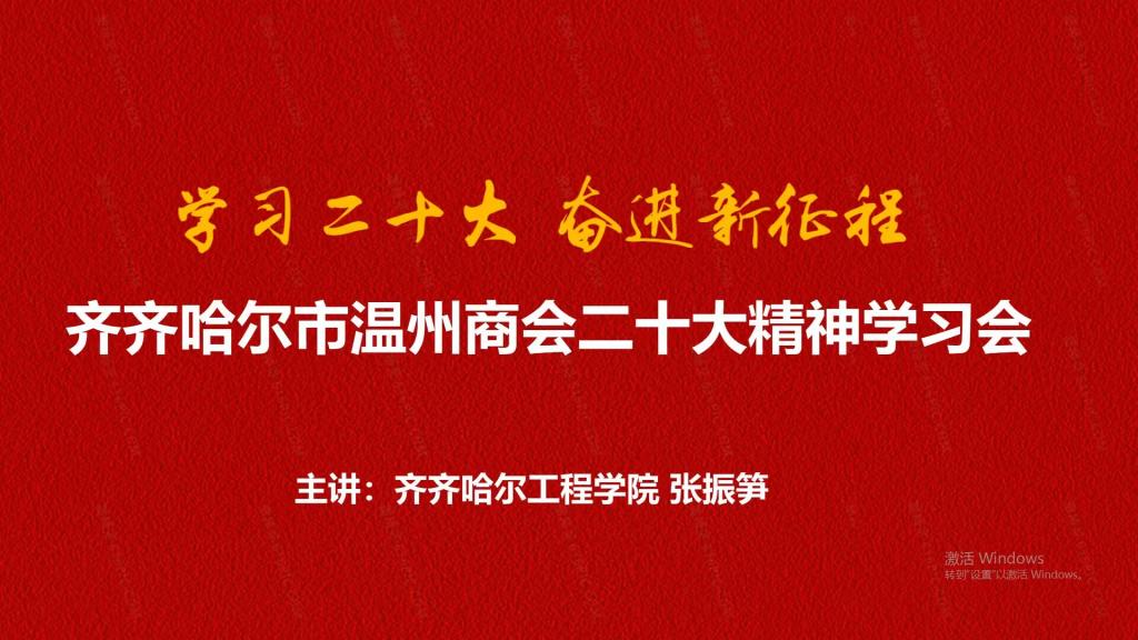 近日,齐齐哈尔市温州商会组织“学习二十大 奋进新征程”二十大精神学习会。会议邀请校党委副书记、副院长张振笋做《学习党的二十大精神,做到“五个牢牢把握”》专题辅导报告,温州商会会长章国龙、商会党支部书记杜...