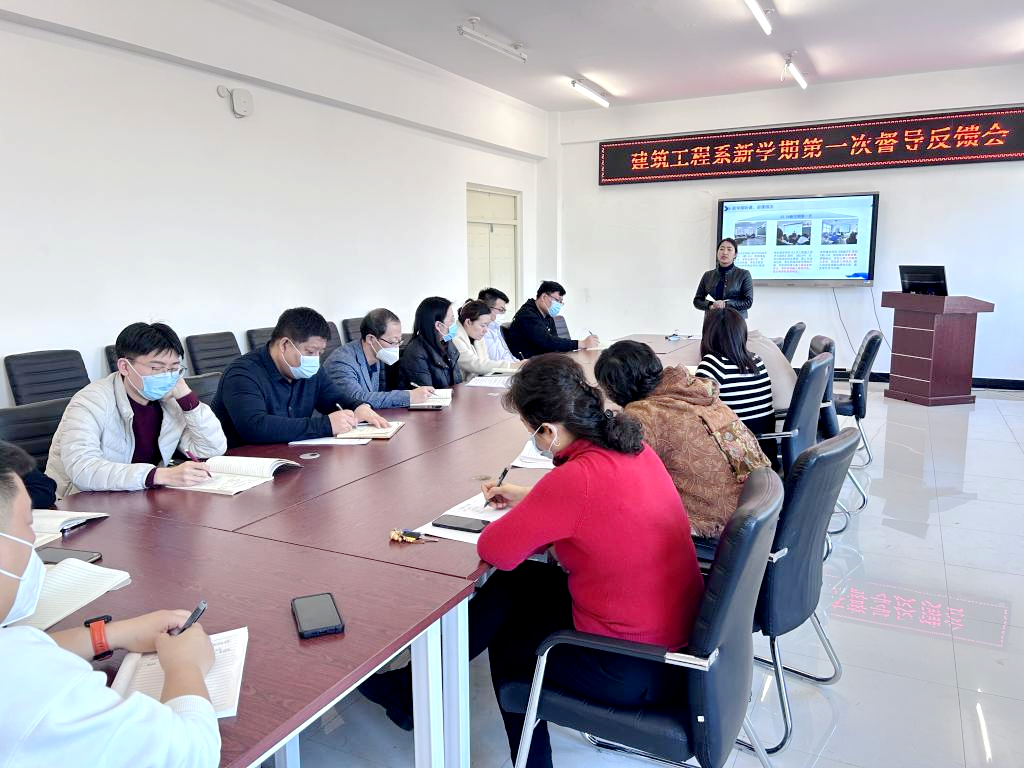 3月6日16点,建筑工程系在二号教学区2409会议室召开新学期第一次督导反馈会。系主任、督导、专业负责人、全体专业教师参会。 首先,二级督导组李俊老师总结开学前教学材料检的查情况,对于完成较好的教学文件、教案进...