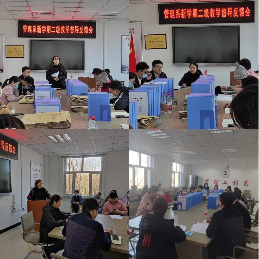 3月6日下午,管理工程系召开新学期二级教学督导反馈会,总结开学第一天听课、巡课情况。系主任陈景鑫、副主任张洪岩及全体教师参加,二级督导于红岩老师主持。 首先,系领导和于红岩、张艳丽、张洪岩老师分别对沈斯文...