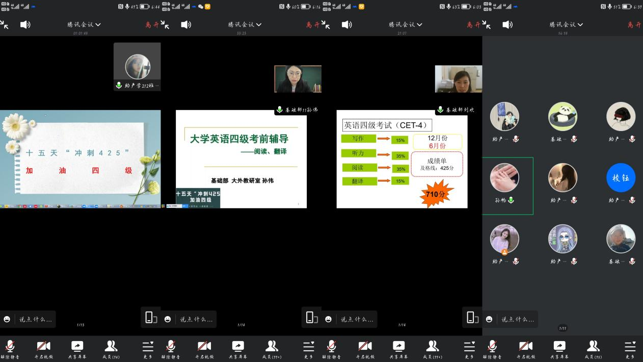 6月4日,健康与护理系助产学专业长孙畅老师特邀大学英语基础部刘欢与孙伟老师线上为助产学专业学生冲刺四级开展考前辅导。助产学专业2020级、2021级、2022级全体同学参加,助产学专业长孙畅老师主持。 今年大学英语四...