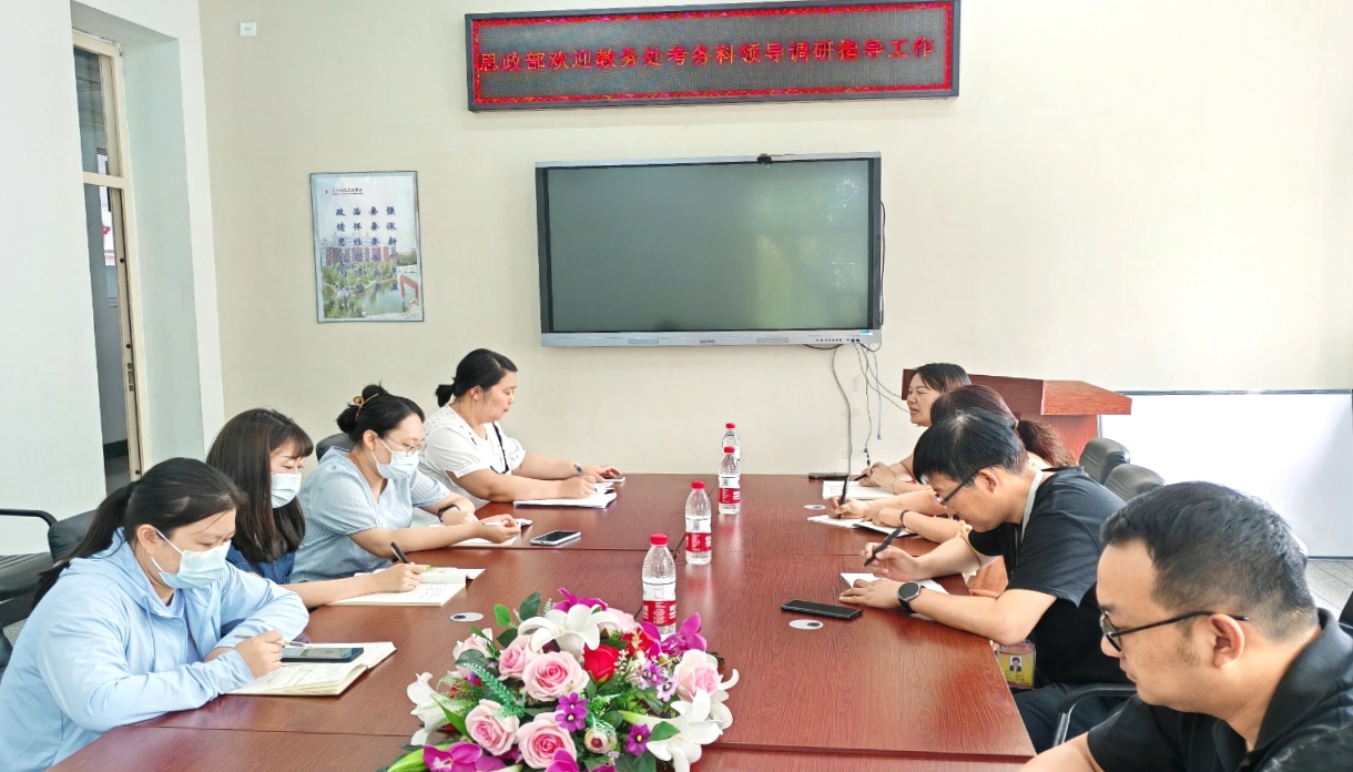 7月17日下午,教务处在思政教学部召开考试工作调研座谈会。考务科科长张莹、思政教学部副主任李娜,考务科陈刚、刘滨和思政教学部部分教师参会。 会上,教务处针对及格率数据分析及检查试卷发现的问题进行指导,并和...