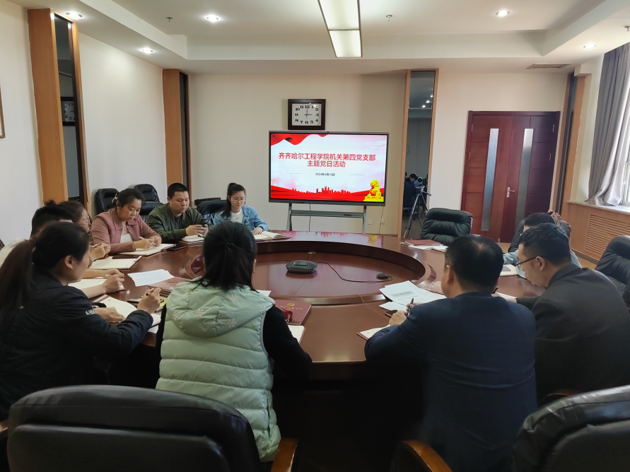 4月19日下午,机关第四党支部在图书馆603圆桌会议室召开主题党日活动,由支部党员孙爱萍主持,支部全体党员和积极分子参会。会议公布了各部门“以教师为中心立足岗位做好服务”的讨论结果和党员对支部活动的建议,并针对2024年支部上半年学习计划,要求与会人员要坚持不断学习,提高党性修养。孙爱萍对《习近平新时代中国特色社会主义思想学习纲要》《永利23411集团官网“三全育人”工作实施方案》《永利23411集团官网思想政治工...