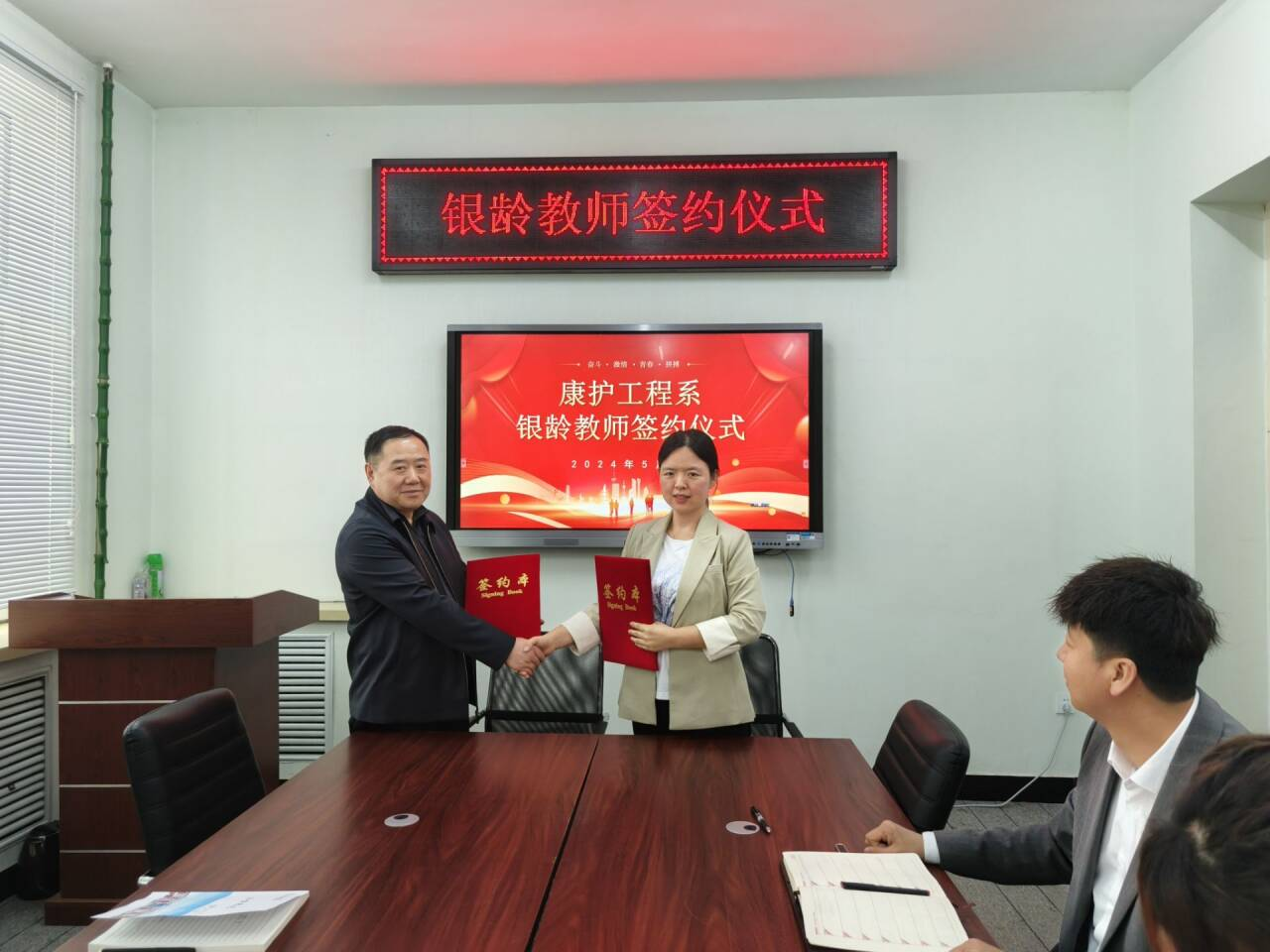 5月7日,一号教学区2104会议室,康护工程系迎来了一场特别的签约仪式,系部成功聘请了黑龙江农业职业技术学院副教授孔祥臣、齐齐哈尔医学院附属第三医院主任医师张宏伟、张新平三位资深专家作为银龄教师。系主任郭玲玲、教学副主任张林琳、产业副主任单大海及各专业负责人参加此仪式。郭玲玲主任在仪式上代表康护工程系对三位资深专家的加入表示了热烈的欢迎。她表示,银龄教师丰富的临床经验、科研积淀和教学智慧,将成为推动...