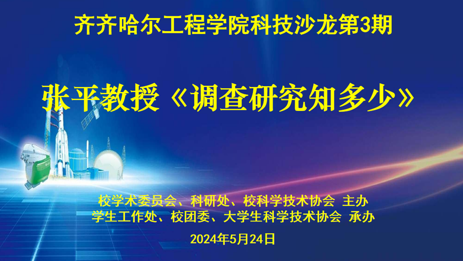 5月24日下午,由学校学术委员会、科研处、科学技术协会主办,学生工作处、校团委、大学生科学技术协会承办的第3期科技沙龙在图书馆501报告厅举行。本期科技沙龙邀请科研处副处长张平教授作题为《调查研究知多少》的专题报告,来自各系的近200名学生参加。活动中,张平首先以信息工程系社会实践学期的调查研究项目“一带一路对家乡经济的影响”导入讲座内容,激发学生深入思考。随后,她从“什么是调查研究、为什么要开展调查研...
