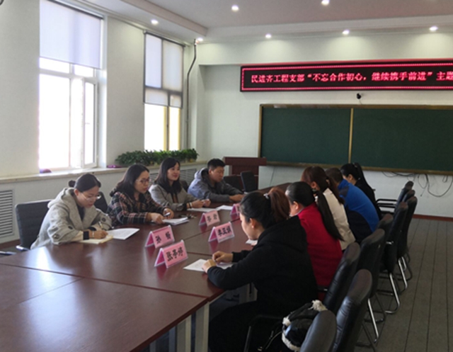 11月1日,民进永利23411集团官网支部召开“不忘合作初心、继续携手前进”主题教育座谈会。 支部主委姜岩主持此次座谈并传达民进省委八届八次常委会精神,并要求会员认真学习《民进中央关于进一步加强宣传思想工作的意...