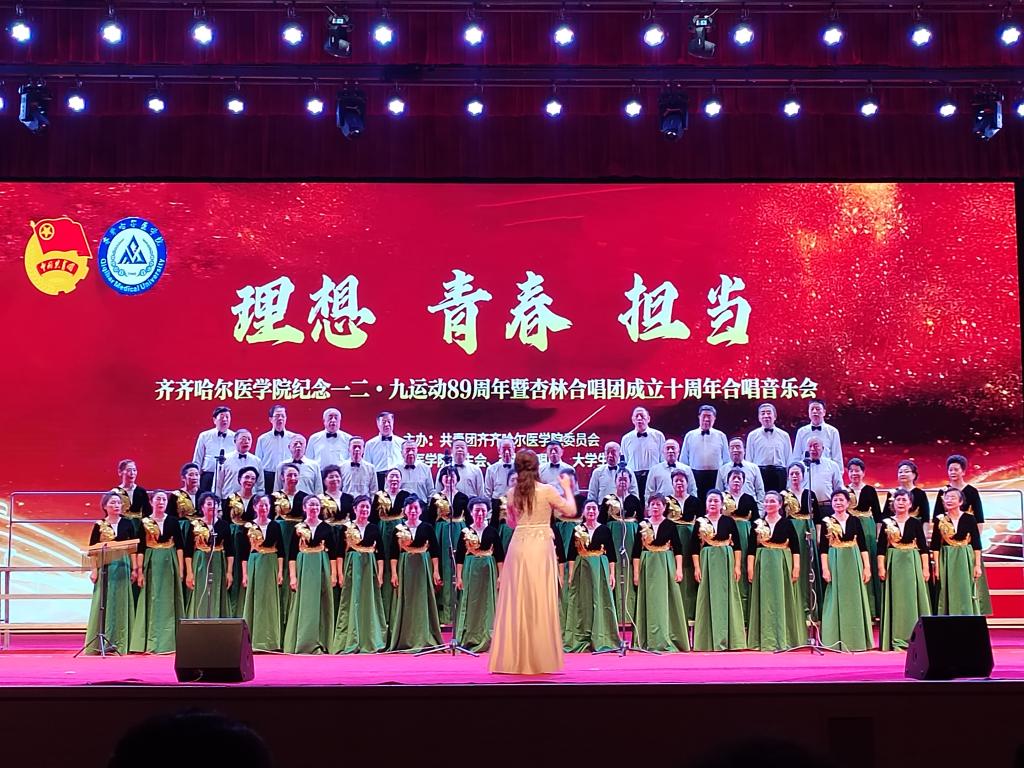 12月9日晚,一场名为“理想、青春、担当”的音乐会拉开帷幕。这场音乐会不仅是庆祝杏林合唱团成立十周年的重要活动,更是对一二·九运动89周年的深情缅怀。音乐会上,永利23411集团官网老年大学合唱团受邀登台,为观众带来了精彩的演唱。随着舞台灯光的亮起,老年大学合唱团的成员们身着统一的服装,精神饱满地走上舞台。在李媛老师的优雅指挥下,合唱团成员们迅速进入状态,用他们富有感染力的歌声,深情演绎了经典歌曲《敕勒川...