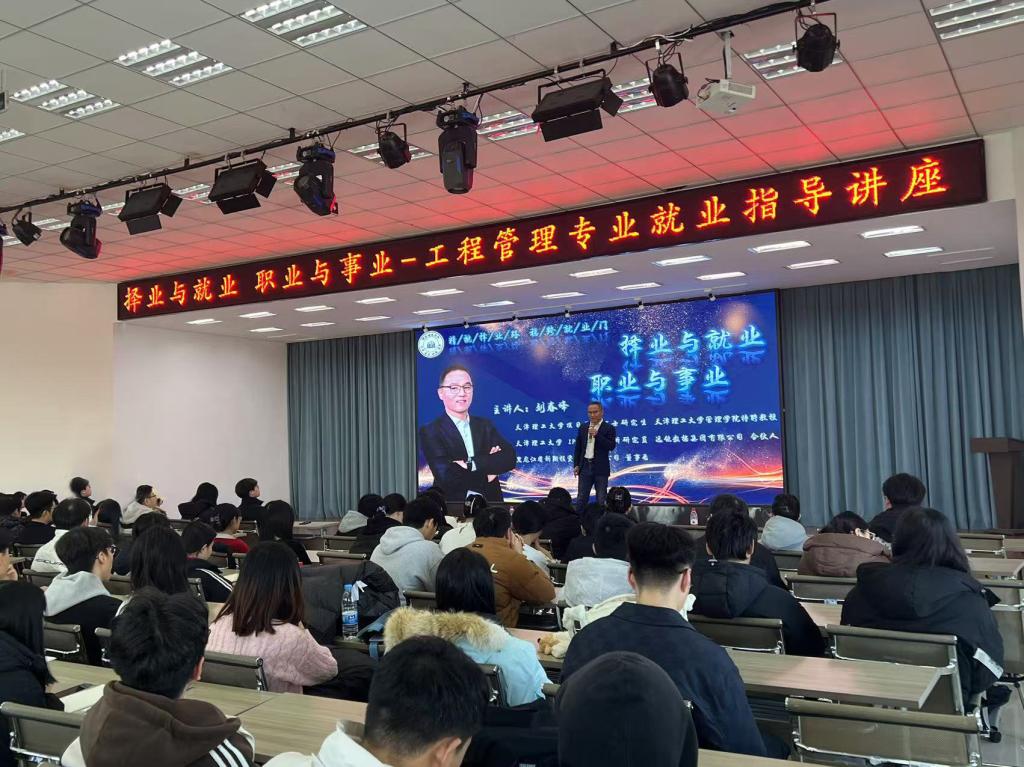 12月10日,建筑管理工程系工程管理专业举办就业指导讲座,邀请黑龙江省新翔投资集团有限公司董事长、天津理工大学管理学院特聘教授刘春峰主讲。系主任徐明、产业副主任贺全德、专业负责人曲梦露、钟美慧、张晶晶、赵靖宇、沈斯文以及部分骨干教师、生涯导师参加,会议由建宸建筑学社组织召开。刘春峰以《择业与就业、职业与事业、专业与就业》为题开展讲座,他从自身经历出发,分享了一个“工程人”的成长心路,并从职业规划、...