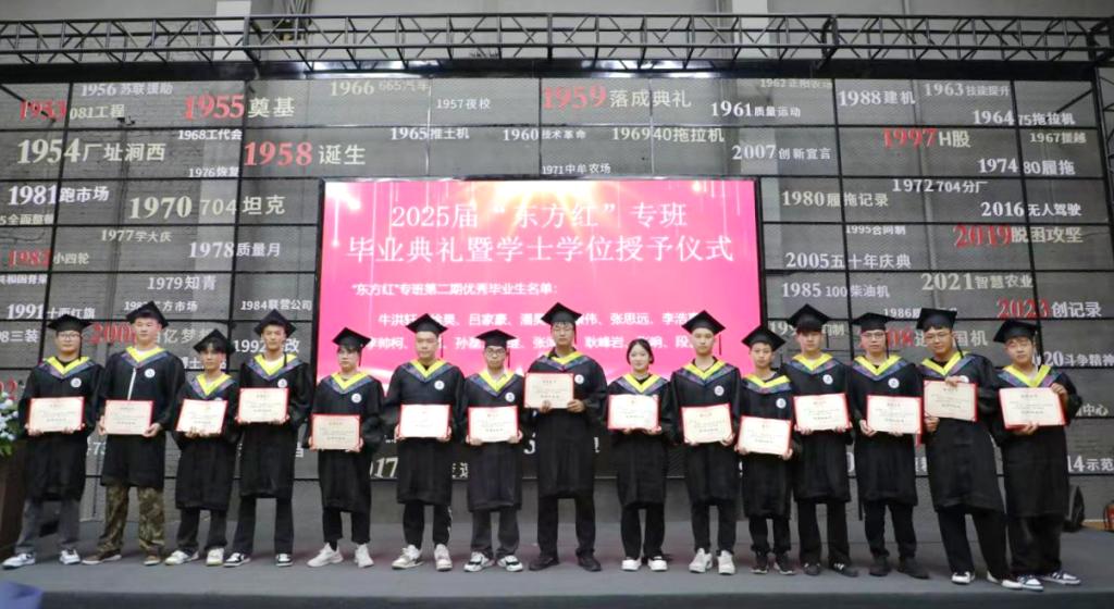 7月30日,学校2025届“东方红”专班毕业典礼暨学士学位授予仪式在中国一拖集团党建活动中心举行。永利23411集团官网副校长张静,机电学院院长敖林喆,中国一拖集团有限公司人力资源部(党委干部部)部长朱永生、副部长周祖伟,人才开发科科长郭婧、副科长王路,“东方红”二期专班毕业生及家长共同参加毕业典礼。毕业典礼由机电学院机械学生党支部书记肖璐主持。肖璐首先介绍了“东方红”二期专班基本情况,专班有49名学生,校...