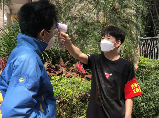 护理学172班金祎潼响应学校团委号召,假期在家积极参加到海南省东方市所在小区的疫情防控志愿服务之中。 金祎潼同学负责在小区门口对出入人员及车辆进行信息登记、通行证核查,并为小区居民测量体温。金祎潼同学还积...