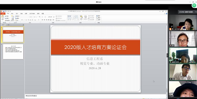 6月28日,信息工程系视觉传达设计专业、动漫专业在线召开“2020版人才培养方案”论证会。 专业长姜岩主持会议,中央美术学院设计学专业博士后研究人员韩雷、泰州学院美术学院教师李华、东北师范大学美术学院教师王默...
