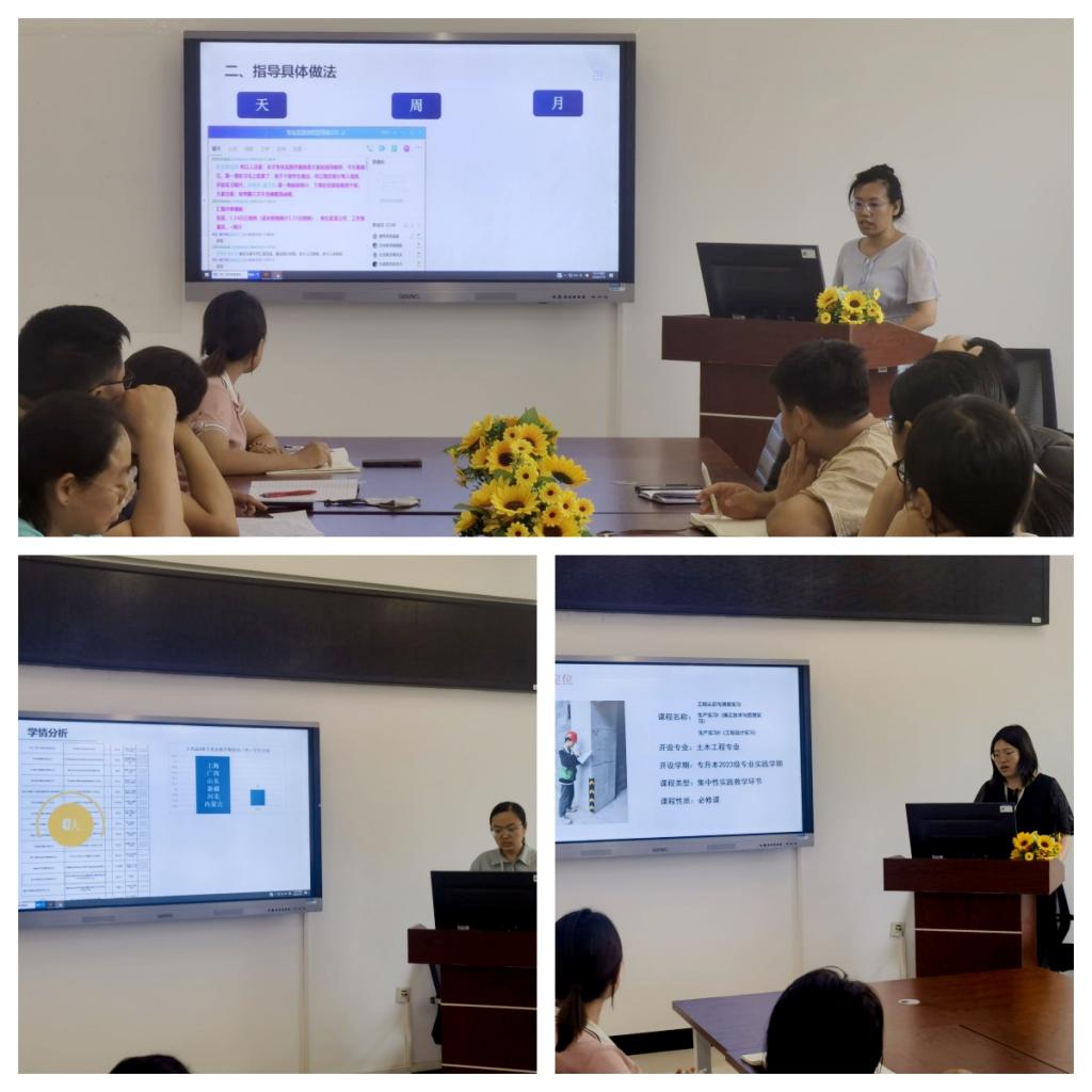 7月10日下午,建筑工程系在二号教学区2409会议室召开专业实践学期阶段成果汇报会。会议由系党总支书记、负责人徐明主持,系内全体教师参加。汇报会采用双抽的形式,教师们依次汇报。土木工程专业张晶晶老师在实践中培养学生吃苦耐劳的精神,并制作成劳动案例集,以易拉宝的形式展示专业特色和学生成果。张晓庆老师深入学生实践场地,结合专业相关要求和岗位特点,对学生实施有针对性的考核,同时从《结构抗震设计》课程出发,...
