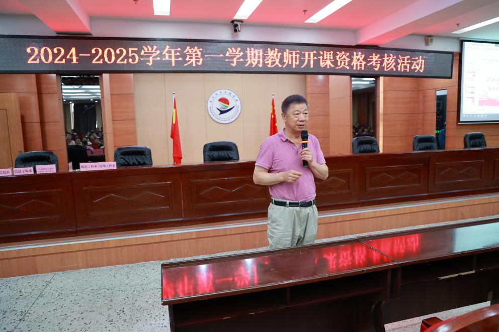 近日,学校在图书馆601报告厅开展了2024-2025学年第一学期专业负责人及教师开课资格考核活动。活动采用线上线下相结合的方式进行。理事长曹勇安教授任特约评委,副院长张静、教师发展中心主任潘宇、各系主任、教学工作副主任及通识课程所服务的相关专业长担任评委。校领导及全校教职工参会。教务处副处长李文禹主持活动。8月18日下午,学校组织专业负责人开课资格审查活动,活动采用“双抽”方式随机确定五个系的5位专业负责人...