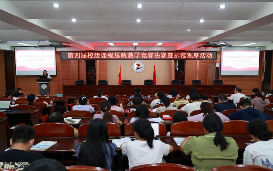 8月26日下午,学校在图书馆601举行第四届校级课程思政教学竞赛决赛暨示范观摩活动。院长、党委副书记曹然彬,副院长张静出席活动,相关职能部门、教学单位负责人及全体教工线上线下观摩。活动由教务处副处长郝丽娜主持。经过前段时间初赛,此次共有10名教师入围决赛,并以“现场说课+教学展示”方式进行,评委由学校课程思政名师、课程思政教学研究中心专家委员会委员担任。参赛教师们精神饱满,课件内容设计新颖、环节严谨,在...
