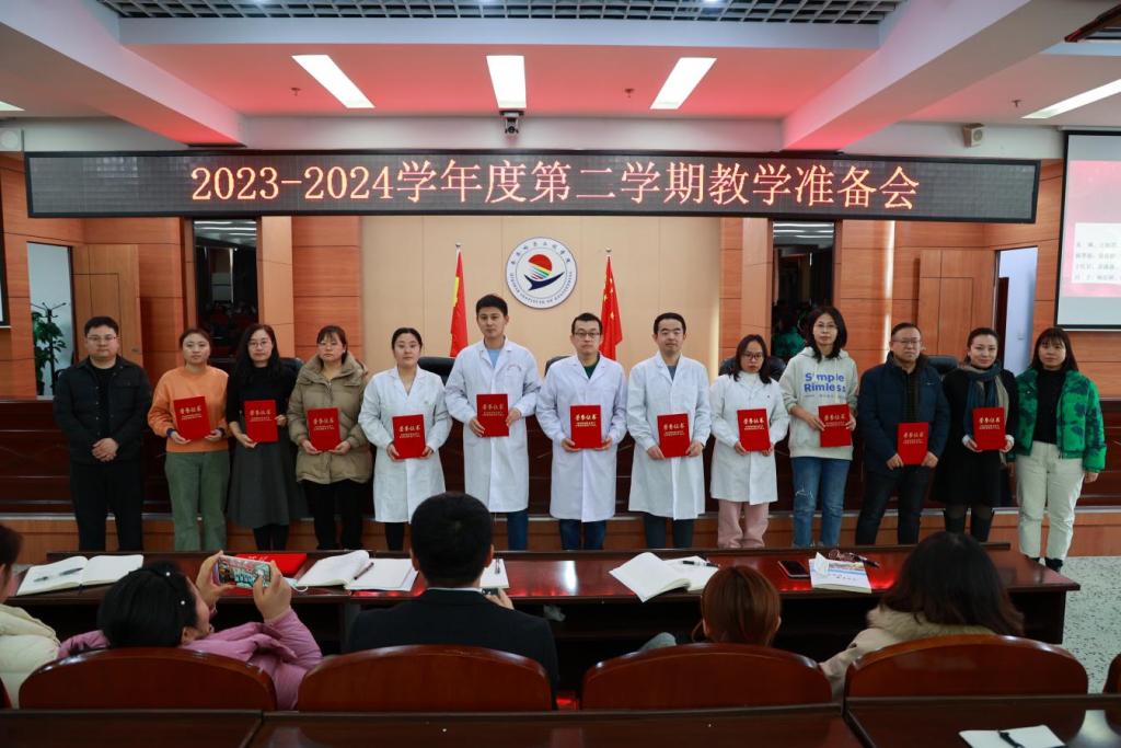 2月24日上午,学校在图书馆601报告厅开展2023-2024学年度第二学期教师开课资格考核活动。理事长曹勇安教授出席并担任特约评委,副院长张静及各教学单位副主任担任评委。各教学单位领导及全体专业负责人、任课教师线下参会,其他教学相关人员线上参会,教务处副处长郝丽娜主持此次活动。活动采用现场“双抽”形式,按部门将教师分为七组,每组随机选定1名任课教师进行说课汇报,同时,基于健康与护理系《中药炮制实训》课程在“...