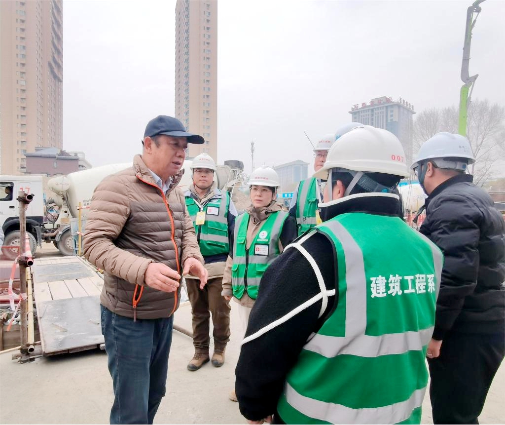 为不断提高校外课堂实践教学质量,进一步加强校外课堂质量监控力度,全面了解和掌握学生校外课堂实践状态,10月12日理事长曹勇安带领建筑工程系党总支副书记刘贤鹏赴永利北区校外课堂看望建筑工程系早班实践学生。建筑工程系党总支书记,副主任徐明,建筑工程系教学副主任郝丽娜,土木工程专业长钟美慧均在校外课堂早班现场,为学生提供有效的指导。在施工现场中,理事长曹勇安的到来受到建筑工程系师生的热烈欢迎,理事长对学...