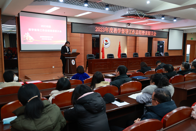 1月2日下午,在图书馆601会议室召开全校2023年度教学督导工作总结表彰大会。会议由全面质量管理办公室主任孟艳辉主持,副院长张静、教务处副处长李文禹、各教学单位教学工作副主任、校系两级教学督导员参会。校级教学督导员柏薇薇老师对2023年教学督导工作进行了全面总结,对教师教学基本功、授课方式、课堂学习氛围等明显进步的方面给予充分肯定,对存在的问题也进行了客观分析,同时也代表全面质量管理办公室对下一步的督...