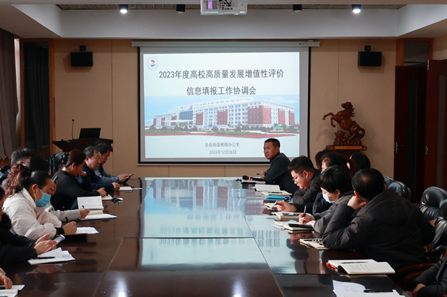 12月26日下午,学校在图书馆603南会议室召开2023年高质量发展增值性评价信息填报协调会。党委书记郭伟东主持会议并讲话,学校全体校领导和部门负责人参加会议。全面质量管理办公室主任孟艳辉介绍了高质量发展增值性评价信息填报内容、填报流程以及填报系统操作要点等,明确了工作流程与职责分工。院长曹然彬就永利高质量发展增值性评价填报工作的重要性、工作要求以及工作态度提出具体明确的要求。郭伟东书记就高质量发展增值...