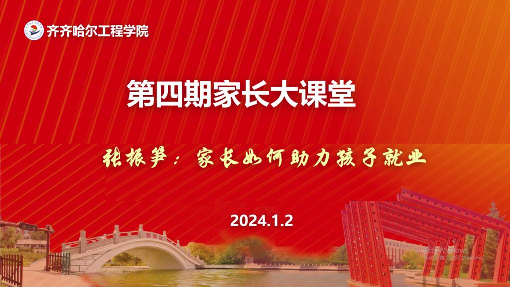 为全面落实党中央、国务院对高校毕业生就业创业工作的决策部署,按照教育部和省委、省政府对高校毕业生就业创业工作的有关要求,全力促进永利毕业生高质量充分就业、留省就业。1月2日,校党委副书记张振笋做客第四期家长大课堂,以《家长如何助力孩子就业》为题做专题讲座。张振笋副书记以聊家常的方式,从就业形势、择业观念、创业精神、职业指导四个方面,以丰富的案例,生动的语言,围绕毕业生家长普遍关心的毕业生就业问题...