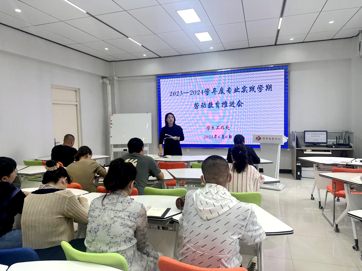 为进一步加强劳动教育的理论研究和实践探索,充分发挥劳动教育的综合育人价值,6月6日下午,学生工作处在二号教学区2102教室召开2023-2024学年度专业实践学期劳动教育推进会,常务副院长陈景鑫、学生工作处全体人员、各系党总支副书记及专业负责人参会。会议由学生工作处负责人王丽萍主持。会上,王丽萍介绍了本次推进会的目的和意义,希望通过此次会议,能够集思广益,共同推动劳动教育深入开展。学生工作处处长助理郭慧莹对...